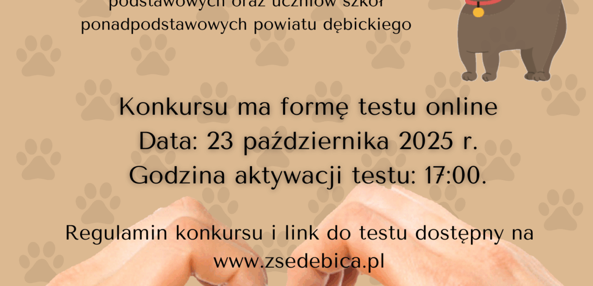 V Powiatowy Konkurs „Zwierzęta – lubię, szanuje, dbam” skierowany jest do uczniów klas VI, VII i VIII szkół podstawowych oraz uczniów szkół ponadpodstawowych powiatu dębickiego.