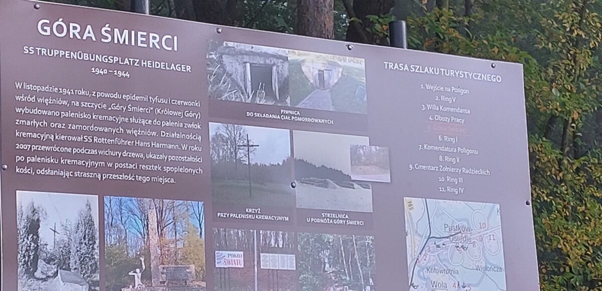 Pierwszym przystankiem była Ekspozycja Historyczno-Dydaktyczna w Pustkowie Osiedlu, zlokalizowana na terenie dawnego hitlerowskiego poligonu wojskowego „SS Truppen-Übungs-Platz Heidelager”. Jest to miejsce szczególne – pełne pamiątek po ludziach, którzy trafili tu wbrew swojej woli. Uczniowie zobaczyli zrekonstruowane baraki, dokumenty, przedmioty codziennego użytku i narzędzia pracy, które opowiadają historię więźniów lepiej niż jakikolwiek podręcznik. Każdy eksponat to osobna opowieść o głodzie, chłodzie, wycieńczeniu i ludzkim dramacie.