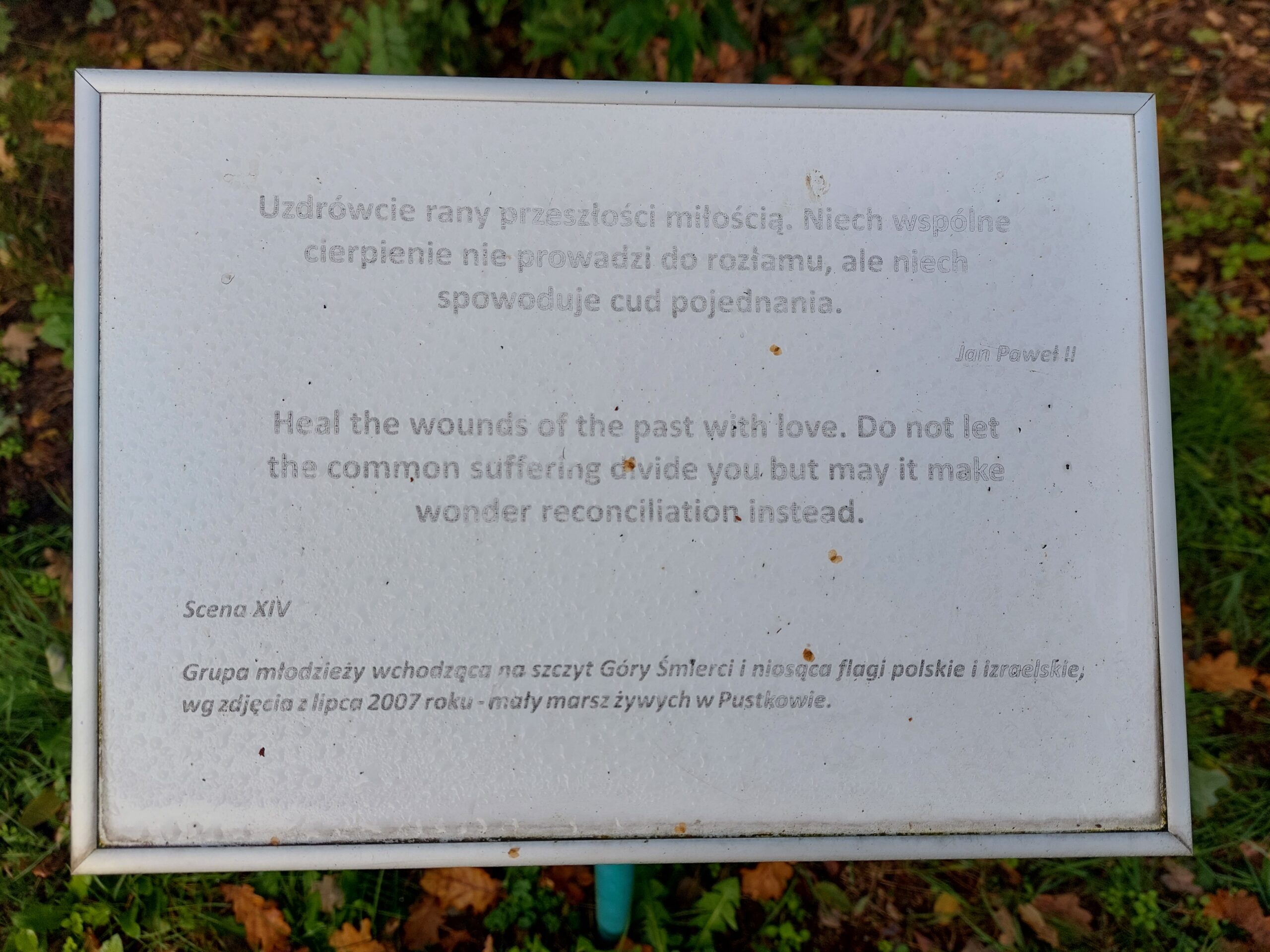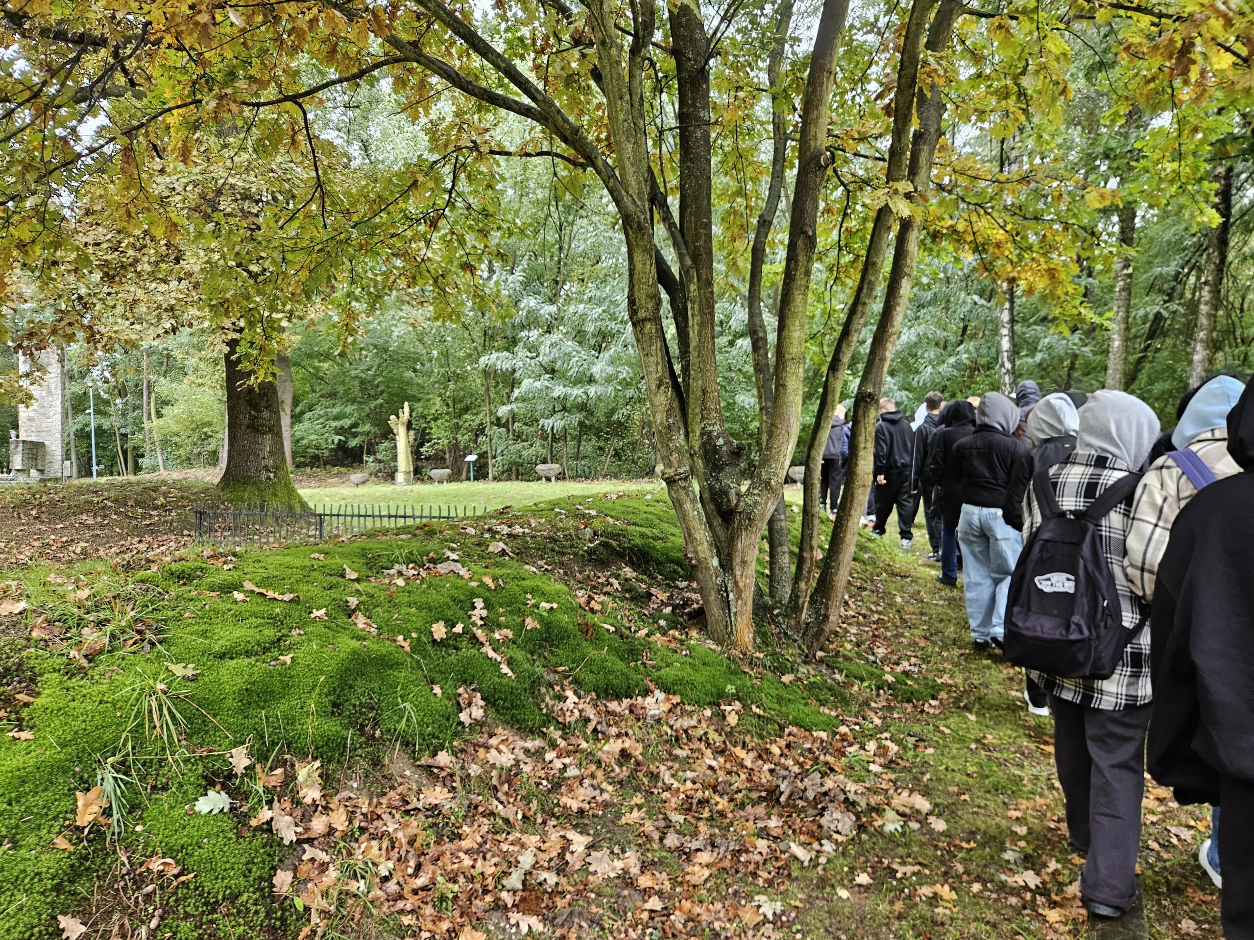 Następnie młodzież udała się na „Drogę Cierpienia” – poruszającą ścieżkę wyznaczoną przez 14 rzeźb w kształcie ludzkich dłoni. Symbolizują one ból, nadzieję i pamięć.