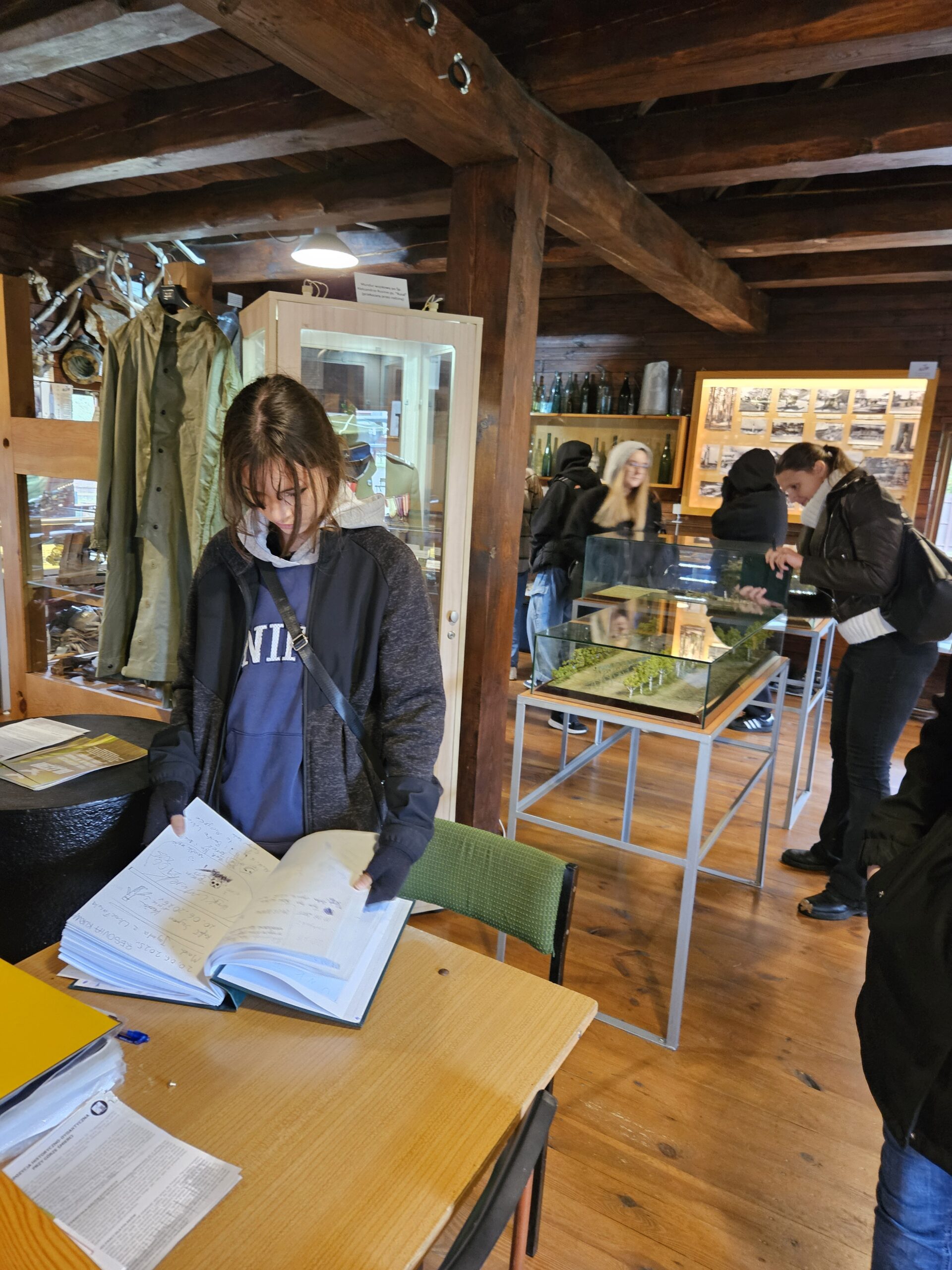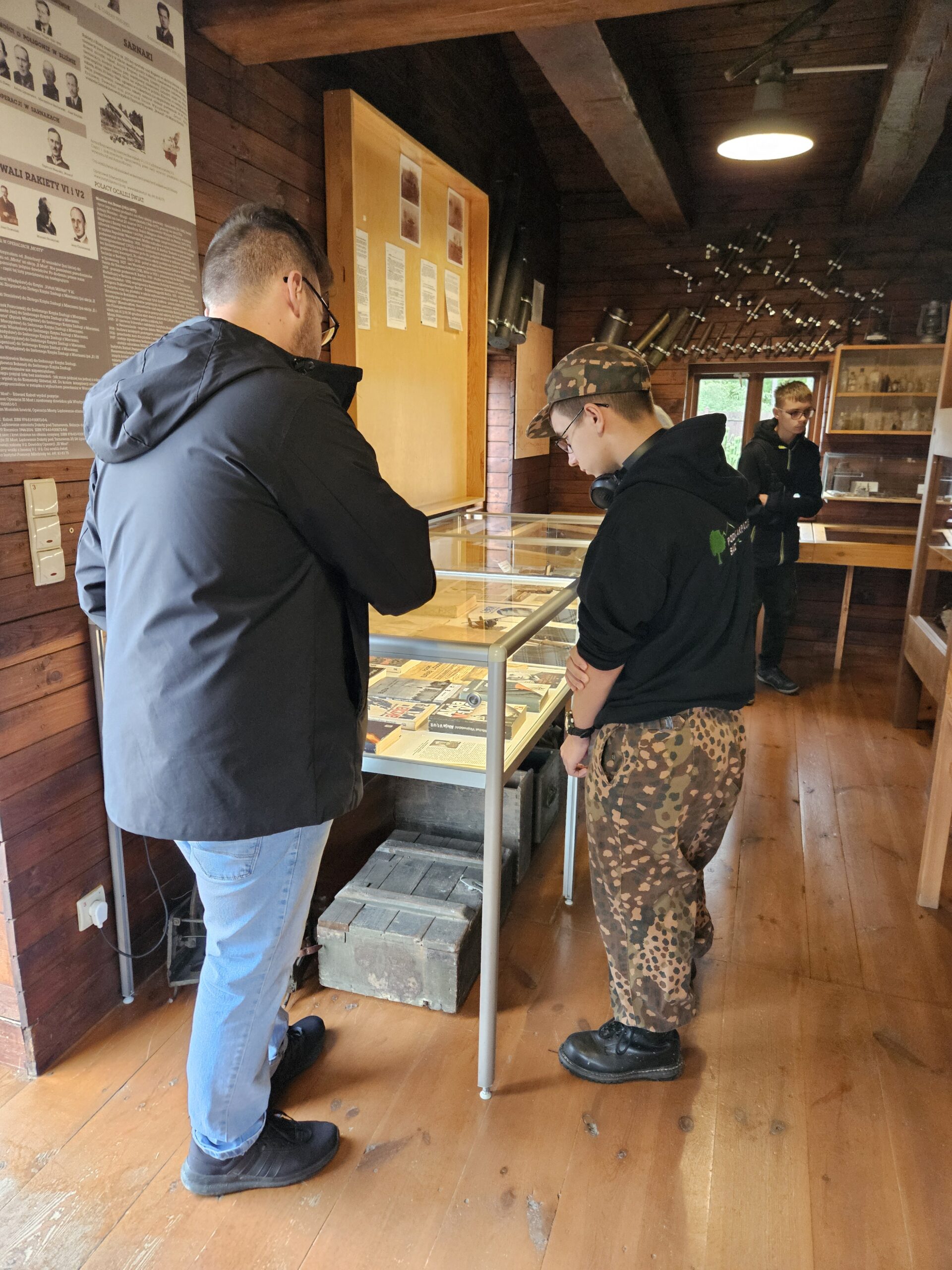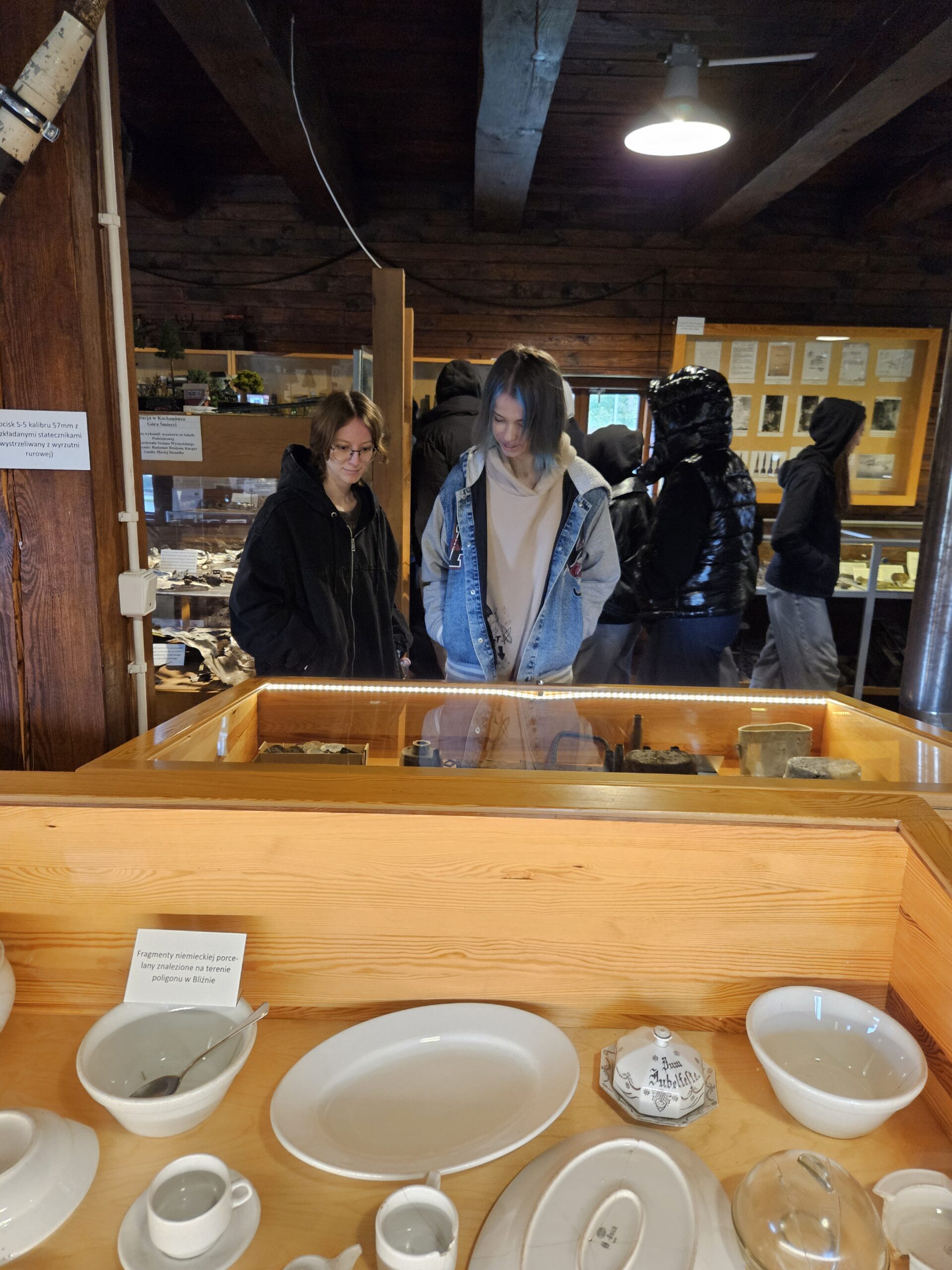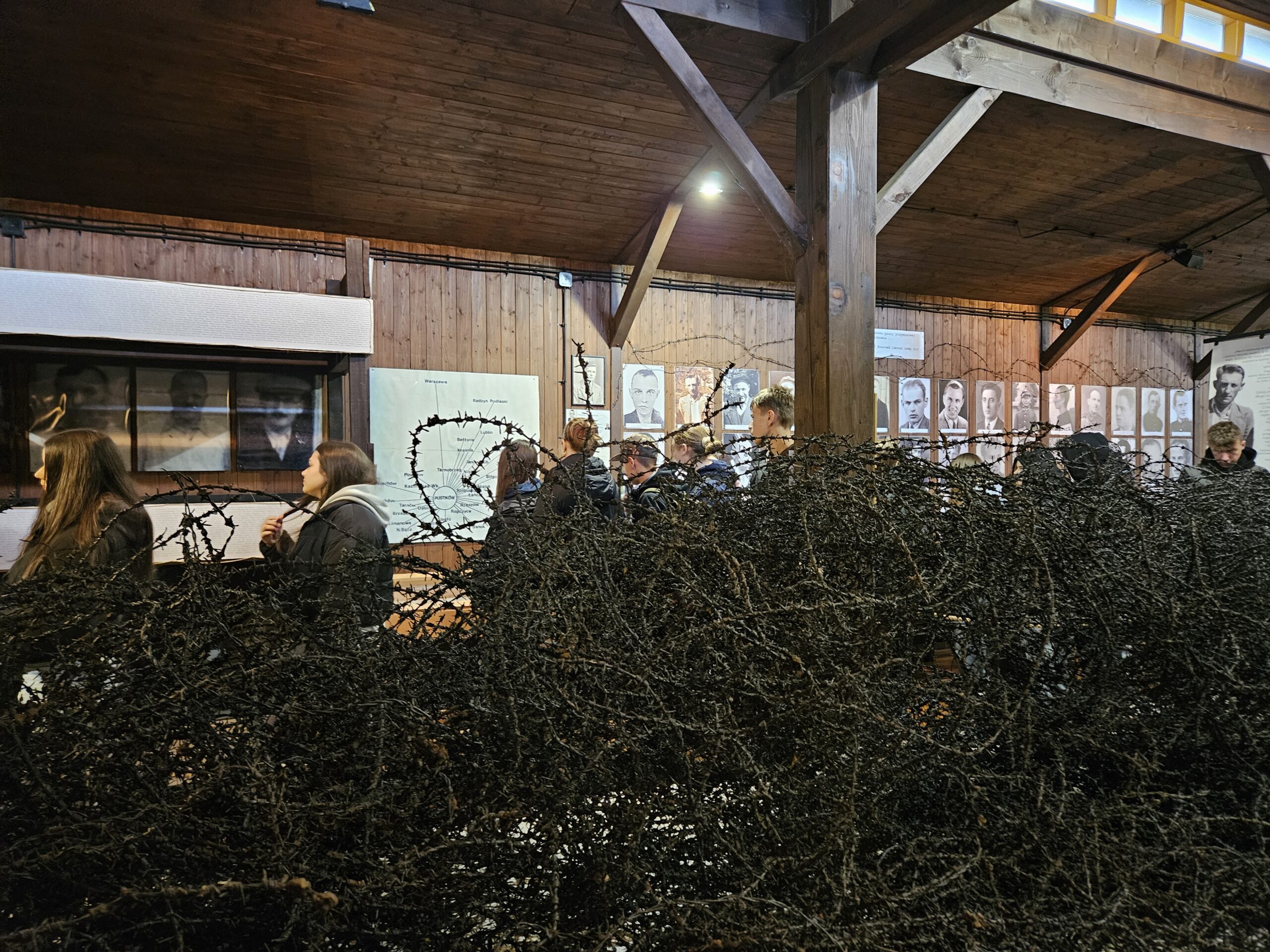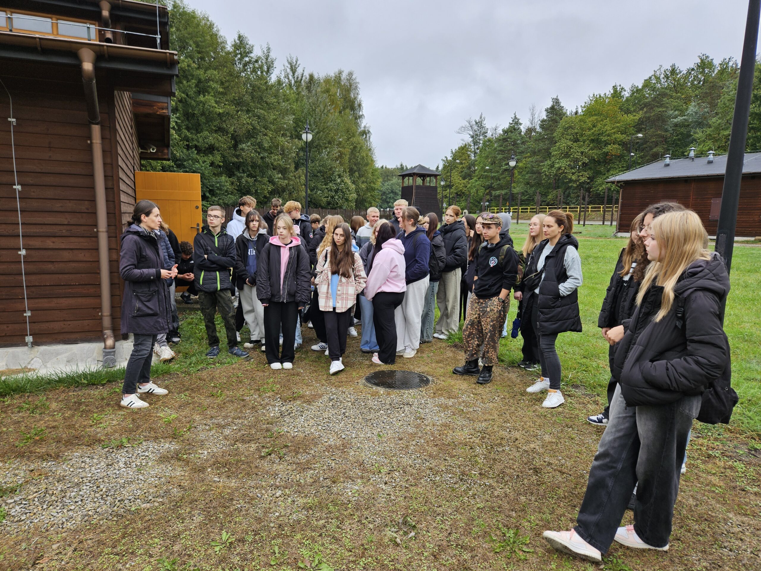 Pierwszym przystankiem była Ekspozycja Historyczno-Dydaktyczna w Pustkowie Osiedlu, zlokalizowana na terenie dawnego hitlerowskiego poligonu wojskowego „SS Truppen-Übungs-Platz Heidelager”. Jest to miejsce szczególne – pełne pamiątek po ludziach, którzy trafili tu wbrew swojej woli. Uczniowie zobaczyli zrekonstruowane baraki, dokumenty, przedmioty codziennego użytku i narzędzia pracy, które opowiadają historię więźniów lepiej niż jakikolwiek podręcznik. Każdy eksponat to osobna opowieść o głodzie, chłodzie, wycieńczeniu i ludzkim dramacie.