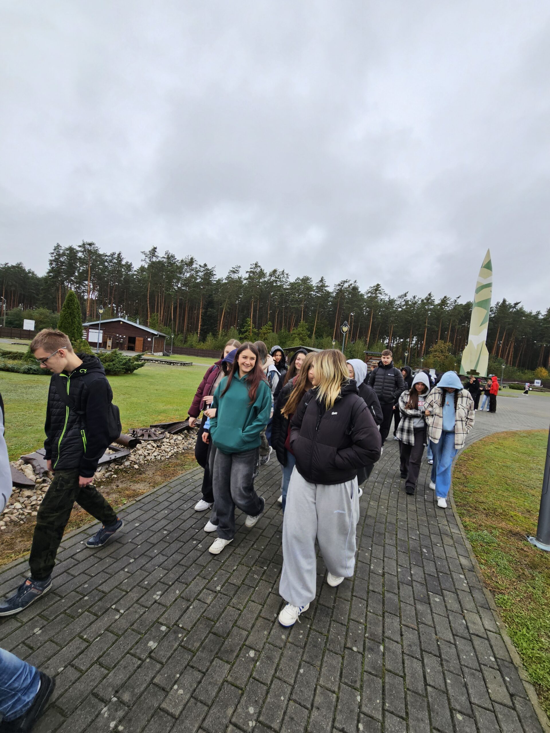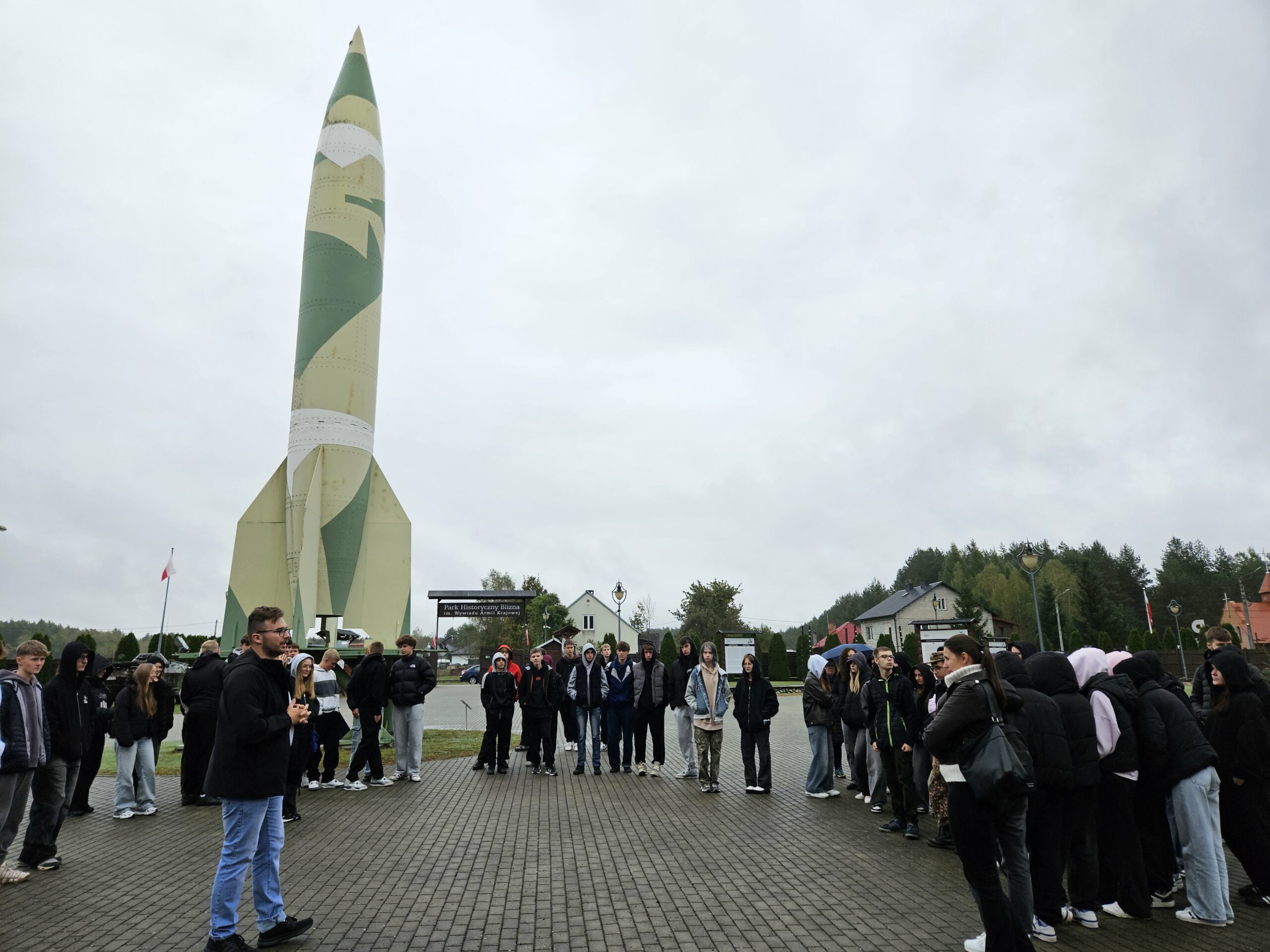Kolejnym punktem programu był Park Historyczny Blizna im. Wywiadu Armii Krajowej. To właśnie tutaj Niemcy prowadzili testy nad rakietami V-1 i V-2 – tak zwaną „cudowną bronią”. Uczniowie poznali historię tego miejsca, rolę więźniów w jego budowie oraz niezwykłe działania polskiego wywiadu, który przekazał aliantom bezcenne informacje o niemieckich planach.