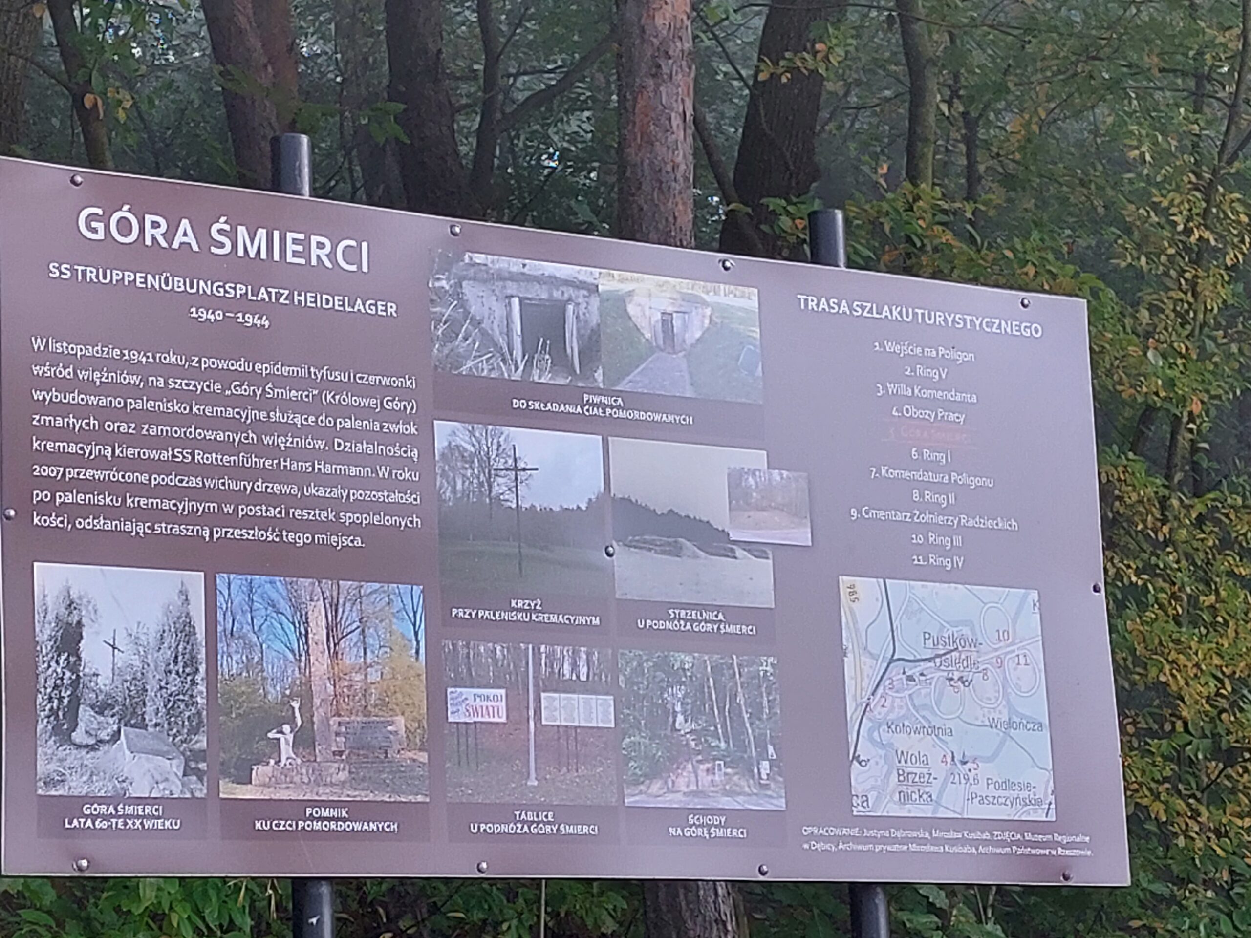 Spacer prowadził na Górę Śmierci, gdzie znajdują się pozostałości paleniska krematoryjnego i miejsce, w którym przechowywano ciała pomordowanych.