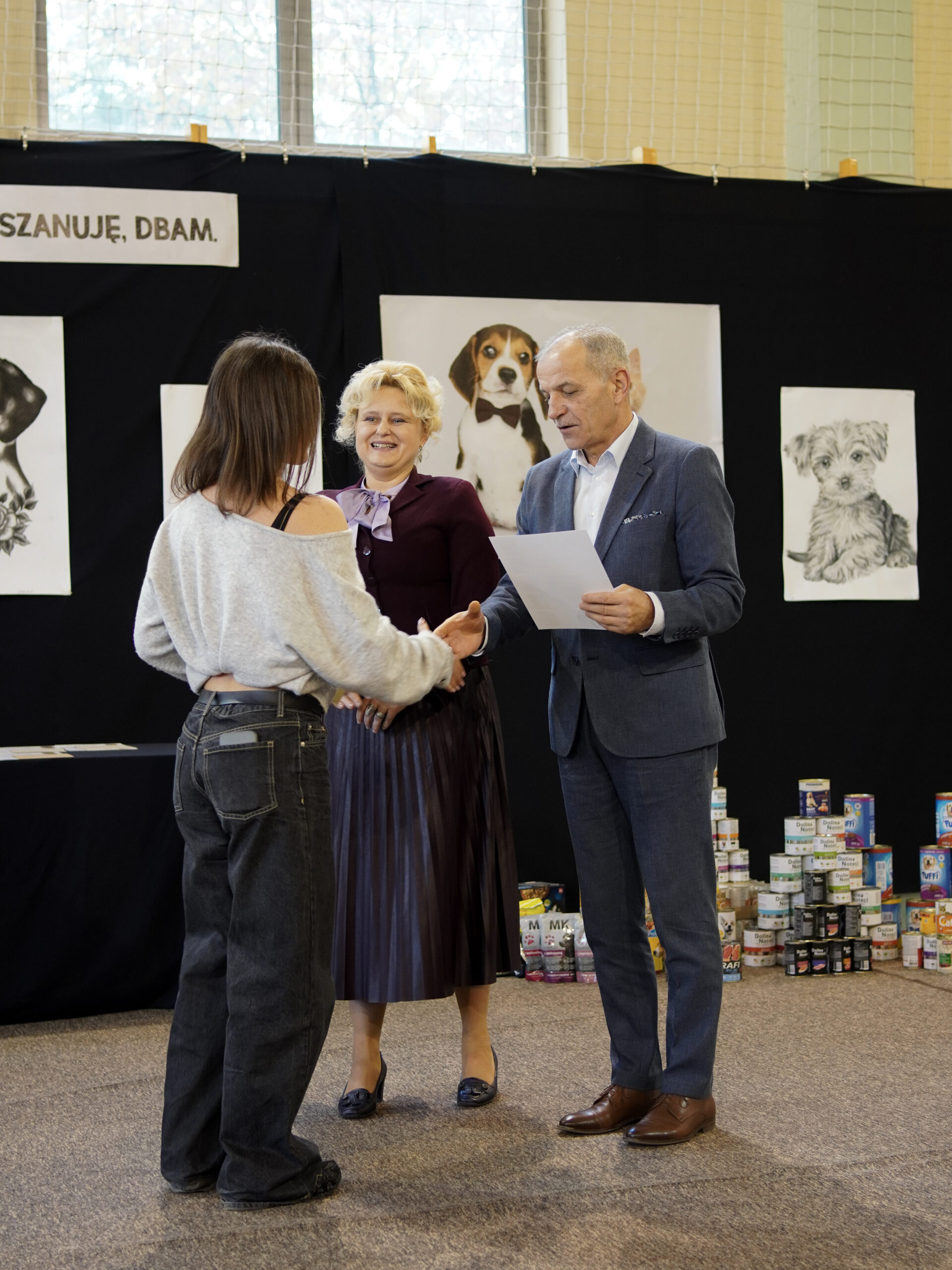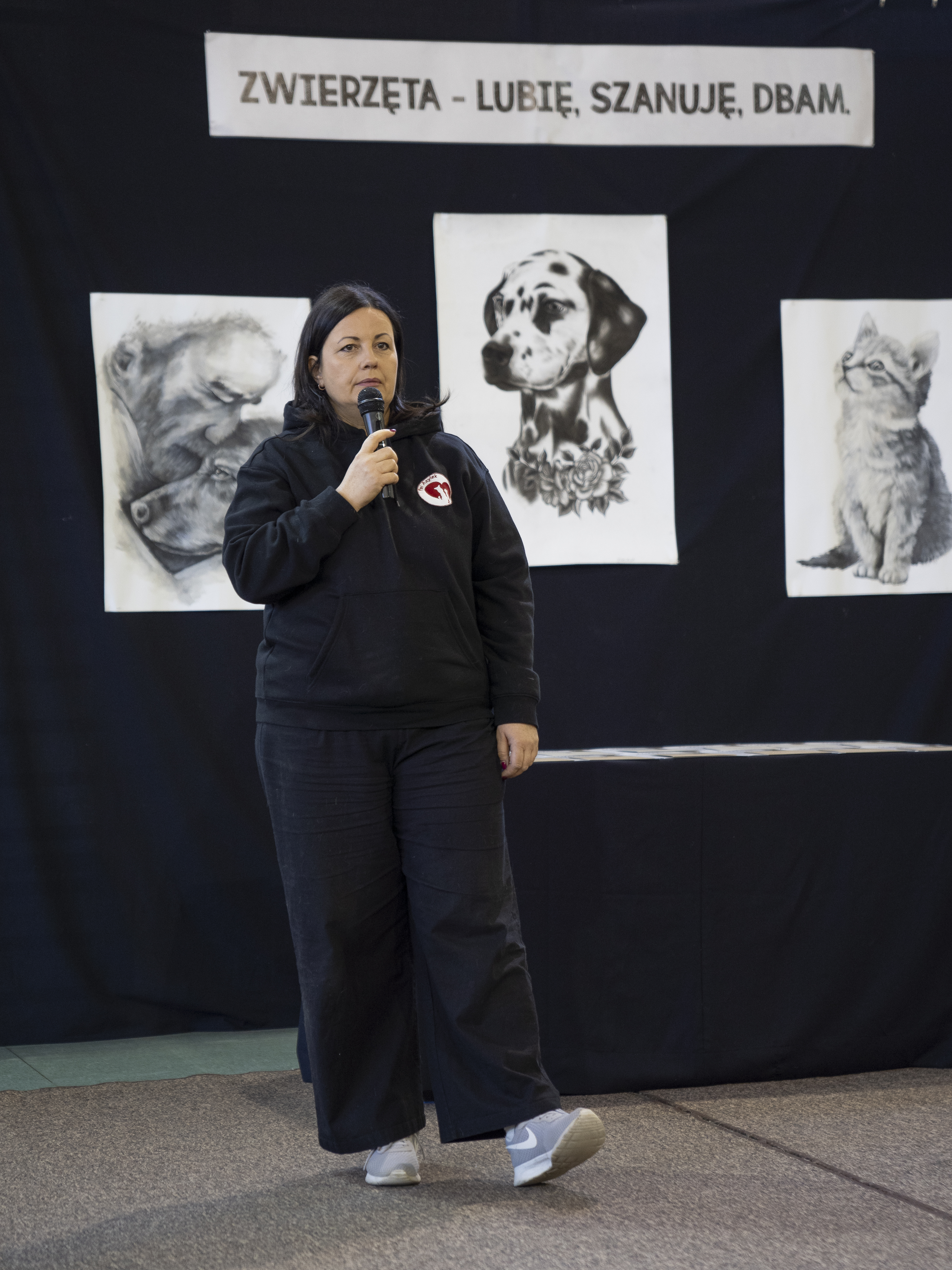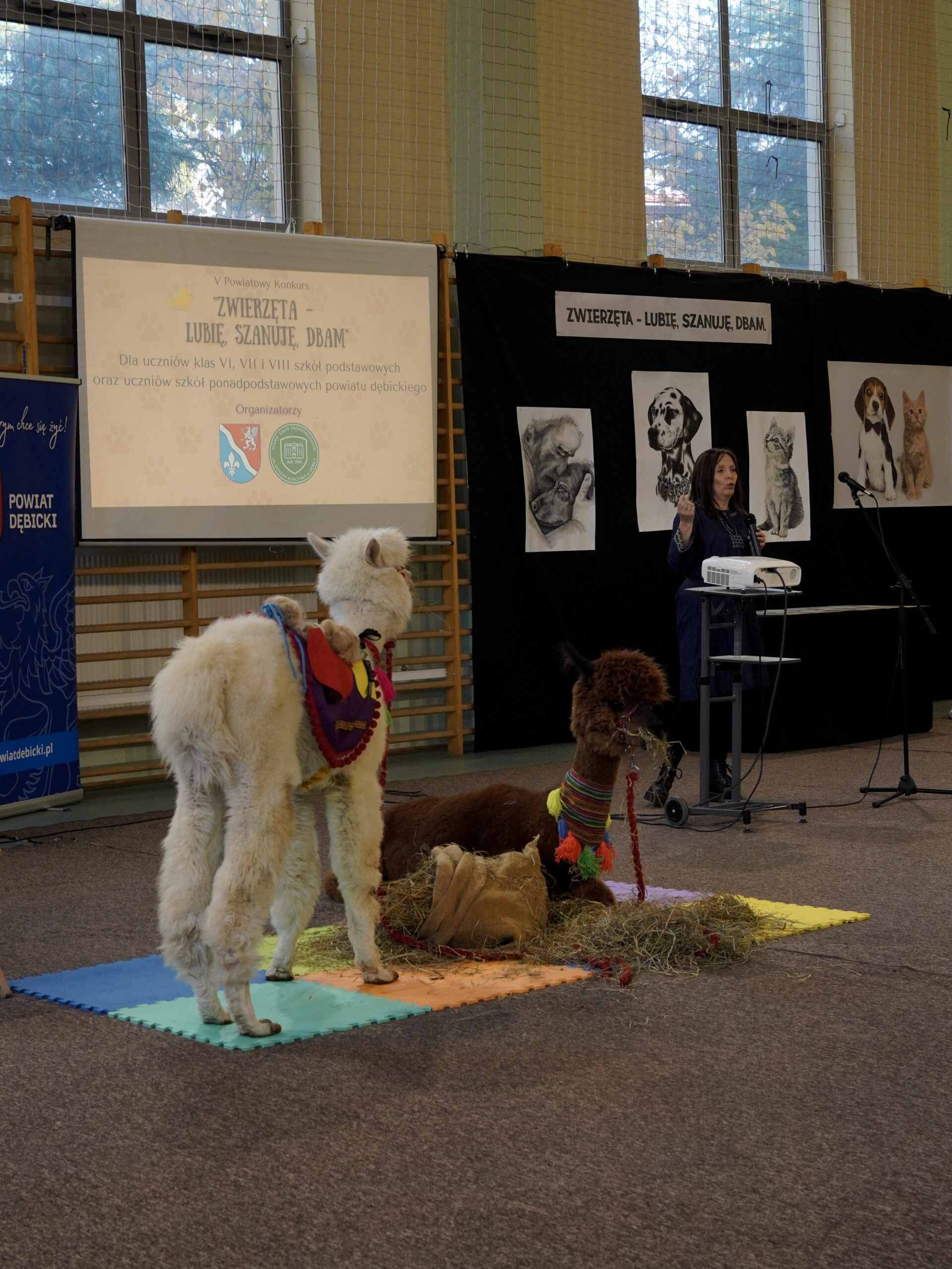 Uroczystość była bogata w treści edukacyjne i inspirujące prelekcje, mające na celu uwrażliwienie młodzieży na los zwierząt. Pani Aleksandra Kułak wprowadziła uczestników w świat zooterapii, opowiadając o uzdrawiającej i łagodzącej stres mocy alpak. Po ceremonii uczestnicy mieli okazję do spotkania z tymi niezwykłymi terapeutami. Pani Anna Augustynowicz z Fundacji „Psi Azylek – Zwierzęta w Potrzebie” poruszyła bolesny temat bezdomności, odpowiedzialności ludzkiej oraz wyzwań, z jakimi mierzą się schroniska i wolontariusze. Podkreślając praktyczny wymiar dbałości o zwierzęta, podczas uroczystości przekazano Fundacji „Psi Azylek” karmę zebraną przez młodzież Zespołu Szkół Ekonomicznych w ramach Miesiąca Dobroci dla Zwierząt.