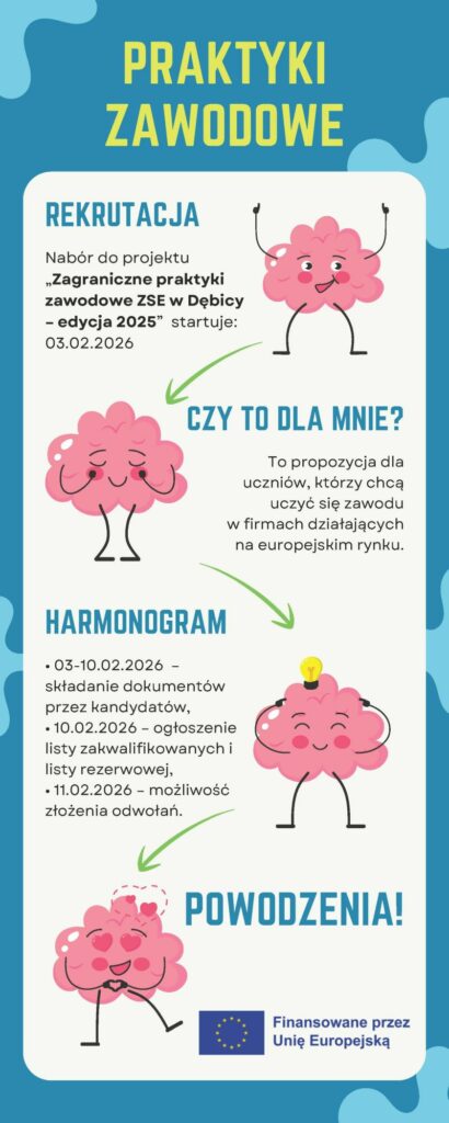 Rozpoczynamy rekrutację do projektu „Zagraniczne praktyki zawodowe ZSE w Dębicy – edycja 2025”, numer projektu: 2025-1-PL01-KA122-VET-000344054.