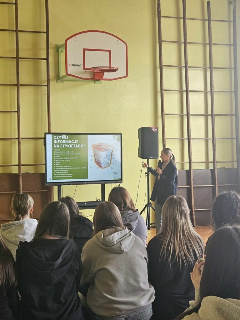 26 marca w naszej szkole mieliśmy przyjemność gościć panią Ewę Wojtaszek – doświadczoną dietetyczkę, która na co dzień od wielu lat pracuje w gabinecie dietetycznym „Bonne Sante” w Dębicy. Przeprowadziła niezwykle ciekawą i pouczającą prelekcję, podczas której dowiedzieliśmy się, jakie produkty warto wybierać na co dzień, a których lepiej unikać, aby dbać o zdrowie i dobre samopoczucie. Pani Ewa w bardzo przystępny i interesujący sposób wyjaśniła, jak czytać oraz analizować składy produktów spożywczych, na co zwracać uwagę podczas zakupów, a także jak nie dać się zwieść chwytom marketingowym stosowanym przez producentów żywności.